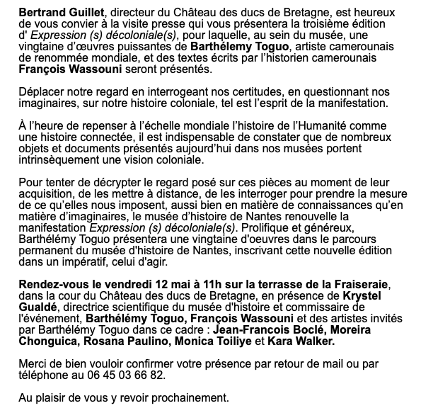 Château des ducs de Bretagne – Visite presse Expression (s) décoloniale(s) #3