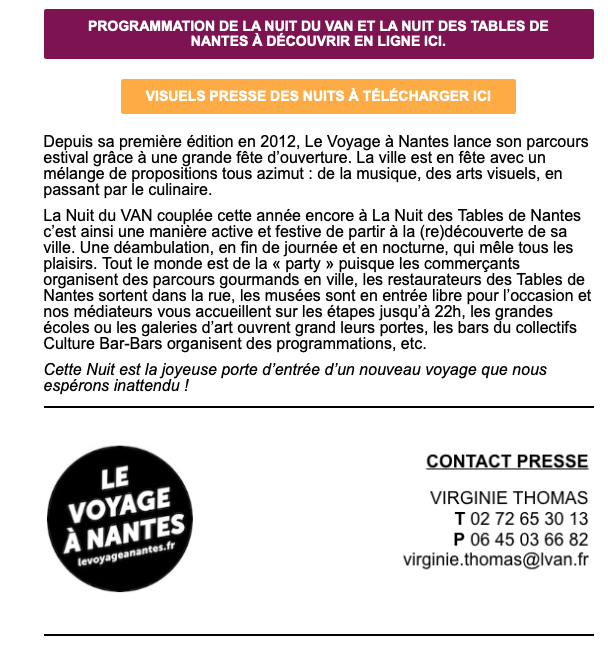 Le Voyage à Nantes – Communiqué de presse NDV